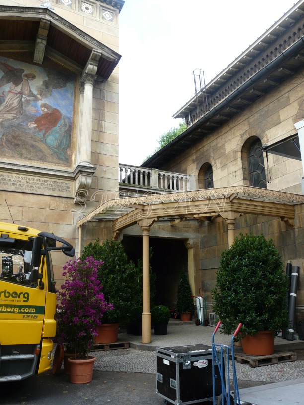 On the occasion of the Wedding of Prince Georg Friedrich of Prussia and Princess Sophie of Isenbrug i made some vacation in Potsdam and later also Berlin. I arrived there on Wednesday a few ddays before the Wedding. After the arrival i meet with some Anuschka and Sofia who had also arrived on this morning. We visited as first the Friedenskirche the location for the upcoming Wedding as this was the first days it was open to the public. As we had seen allof it we walked back and at the Luisenplatz we spotted the bridal Coupletalking to some other people. We waited until they where ready then we asked if we could take a pic of them.