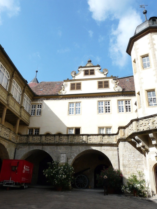 The name Lanburg was first mentioned in 1225 as Langenberg. From1235 the old Castle was rebuild the 2 old round massiv towers are from that time. Between 1610 and 1616 Count Philipp Ernst the Castle was reconstructed as Princely Residence in the Renaissance Style. Especialla striking from this time is the Inner Court with its galleries, gables and stair towers . From 1657 - 1759 the Castle was again reconstructed this time in the somber Baroque style. In this time the 2 bridges which go overt the 2 depp channels to the Main entrance of the Castle where cionstructed. In the 19th and 20th Century the outside of the Caslte was largely mantained until a big fire in January 1963 where the East and North wing of the Castle wings burned down to a big part. In the followings spring it was started to rebuild the Castle was begung and finished in summer 1968. Today the Castle is the residence of Fürst Philipp zu Hohenlohe-Langenbrug and his wife Fürstin Saskia and their 3 children, Hereditary Prince Max Leopold, Prince Gustav and Princess Marita. In another part of the Caslte a Museum was etablished and the rooms and also the Inner Court are open to Visitoris. Another Museum the "german Car Museum" was opned in 1970 in the former stables of the Castle.