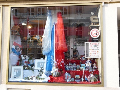 The fall colors are still beautiful, although the rain and wind have scattered some of the leaves into a multi-hued carpet...beautiful patterns of red, yellow, peach and orange spread across green lawns or grey cement. People here have landscaped in such a way that not only their trees turn color, but also their shrubs.