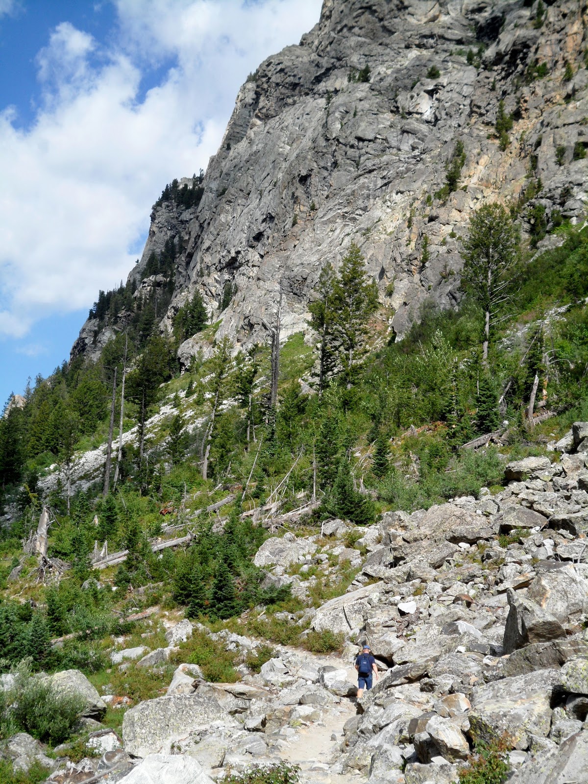(From August 1, 2012) Last night I was re-reading my blog from Cascade Canyon above Jenny Lake in the Grand Tetons of Wyoming. I was aghast. Where were my photos? Something was amiss.After re-reading the blog, I went, "Oh, yeah, I remember, we didn't have internet connectivity for any length of time and I posted I would complete the blog and add photos 'in a week or so.' " Well, blogger friends, it is now two months later and this is "the rest of the story."Please refer to my blog dated August 1, 2012 -- 9.3 Miles, 1,100 ft. Elevation Gain for the segue into this. We had a wet boat ride across Jenny Lake, luckily we snagged a seat under the cover of the boat. By the time we arrived at the trailhead, the rain had stopped. That was the last of the rain for the day!