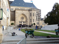 As many other Royal Watchers i travelled last week to the Grach Duchy of Luxemburg to witness the Wedding hereditary Grand Duke Guillaume and Comtesse Stéphanie de Lannoy. After some hours of travekl with the train i arrived there on Thursday afternoon. I first went into the City to have a look on the Church and the Town Hall where the civil Wedding was to take place the next day.