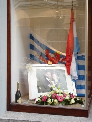 In the evening i meet with Netty from the Netherlands who had arrived that evening and we went to have dinner together. In the next morning i went to the national Museum of History and Art and visited there the exhibtion about the Silver Treasur of the Grand Ducal Family. Afterwars i came across the Palace and i came just in time to see the bridal Couple leaving for the Reception in the Grand Theater which was to take place this morning.