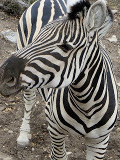 The first paddock we came to had a plethora of different exotics. My sister, Jan, loves giraffes. Our guide spent quite a bit of time by the giraffes. A number of people, including Jan, were able to feed cookies to the giraffe. One man even got a giraffe "kiss."