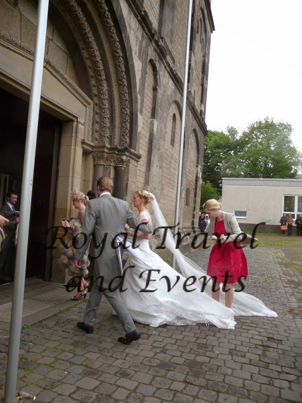 The Wedding of Princess Anna of Hohenzollern and Roman Goldschmith took place on 01.06.2013 at the maria Himmelfahrts Church at Andernach. Princess anna is a daughter of the late Prince Godehart of Hohenzollern and his wife Heide. Her great-grandfahter Prince Karl Anton of Hohenzollern bought in 1908 Namedy Castle in Andernach-Namedy which is still in Family posession. Therefore this is the seat of this branch of the Family. The Wedding on the Wedding Day was very cool and windy but luckily only very light rain.